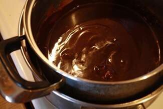 1. Ставимо на водяну баню шоколад і вершкове масло. Постійно помішуємо до перетворення в однорідну масу. Коли весь шоколад розтопиться, водяну баню знімаємо.