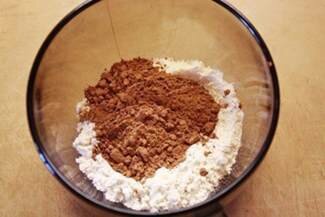 2. В окремому посуді перемішуємо просіяне борошно і какао.