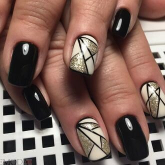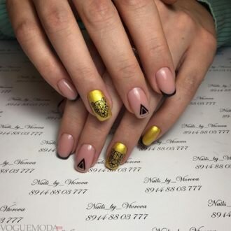 геометричний манікюр з золотом