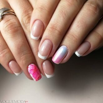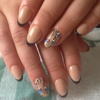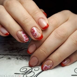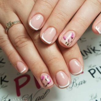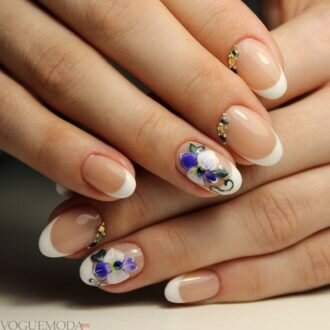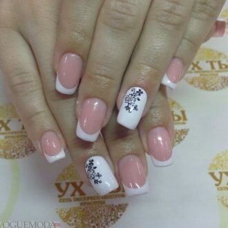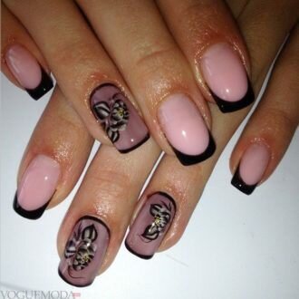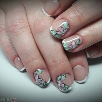 френч на коротких нігтях з квітами