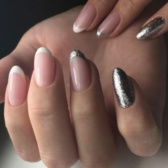 Варіацій на тему зміни білого кольору дуги нігтів у французькому манікюрі придумано немало. Мабуть, самим блискучим з них став міленіум, який ідеальний для вечірнього вбрання.