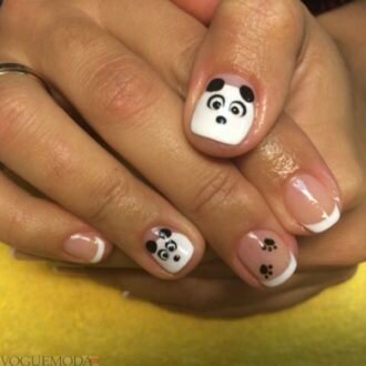 френч на коротких нігтях з пандою
