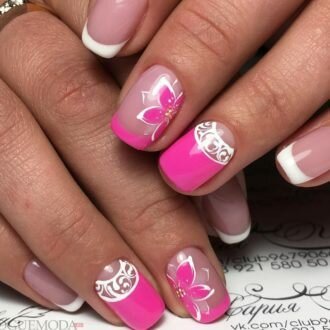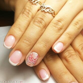 френч на коротких нігтях з квіткою