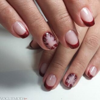 френч бордовий на коротких нігтях