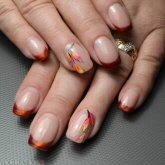 френч на коротких нігтях з кольоровим малюнком