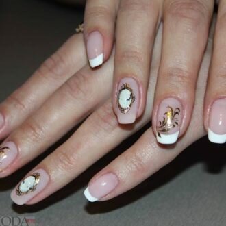 Класичний «френч» ідеальний для коротких нагідок, але варіанти з малюнками також можна знайти.