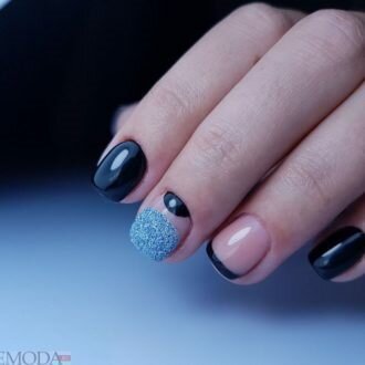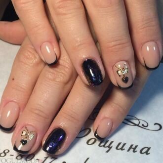 - Чорний «френч». Заміна білого кольору лаку на чорний, значно змінило концепцію манікюру. Він відразу перестав бути універсальним і вже не підійде до всіх нарядам.