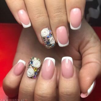 френч на коротких нігтях з прикрасою