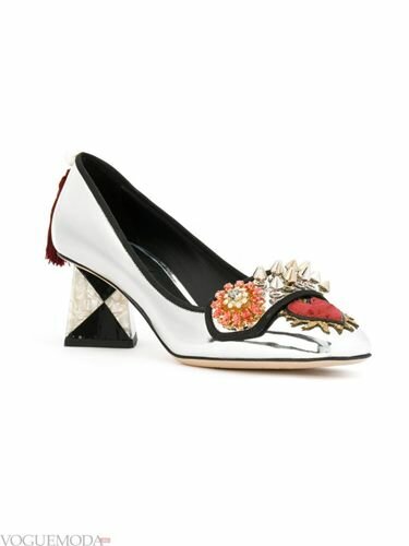 Навіть самі традиційні туфлі знайдуть зовнішню схожість з космічної взуттям, якщо вони виконані з матеріалу з відтінком сріблястого металіка. Дизайнери взуття змогли зруйнувати приївся стереотип і дали нові втілення неординарного кольору.