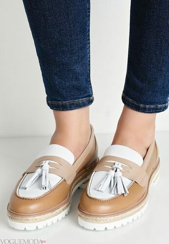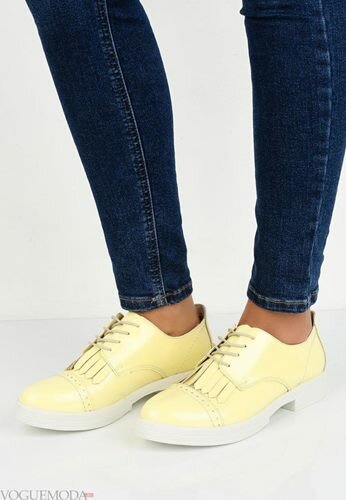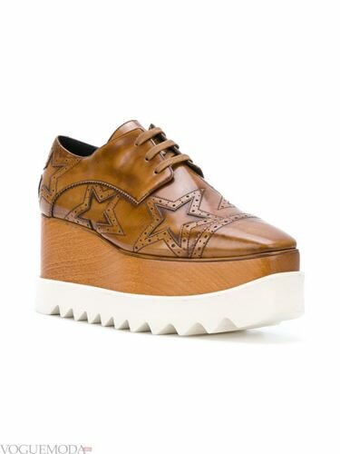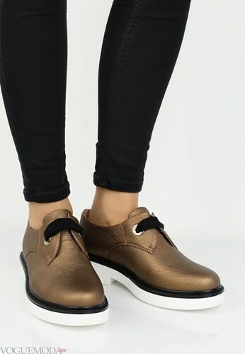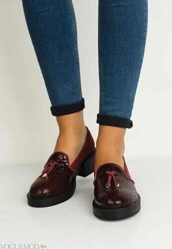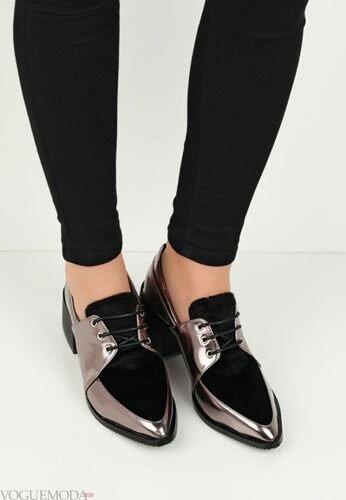 У моді класична модель туфель з заокругленим носком, прикрашена одним великим елементом декору. Черевики дизайнери пропонують взувати з масивним квадратним каблуком і вражаючою платформою на тракторній підошві.