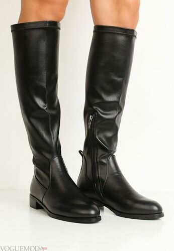 Ботфорти-панчохи займуть особливе почесне місце. Безперечно, дуже ефектно виглядають облягаючі високі чоботи з каблуком, але модель на плоскому ходу створює не менш привабливе враження. Модельєри задіяли велику гаму глибоких відтінків для створення таких ботфортів і не прогадали.
