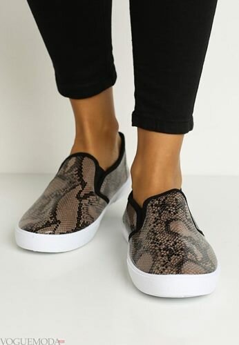 Графічна ілюзія леопардового окрасу використовувалася модельєрами для взуття кежуал стайл. Сліпони і кеди виглядають цілком органічно в сусідстві з однотонною одягом.