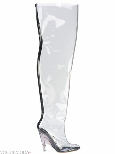 Дизайнери не стали обтяжувати і без того викликає взуття складним кроєм і елементами обробки, а створили туфлі у формі класичної човники. Єдиними відмінностями моделей стало повне або часткове застосування прозорого матеріалу.