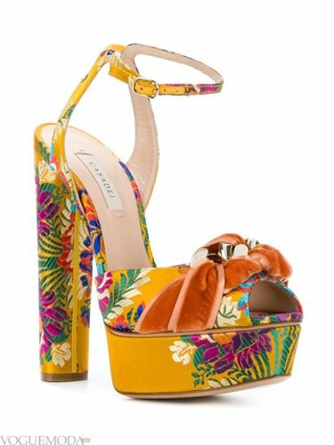 - багатошарова платформа різних кольорів, товстий стійкий каблук;