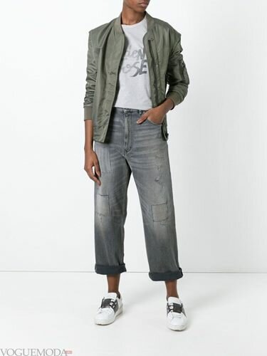 Джинси з вільним кроєм злегка мішкуваті, а головним елементом декору є потертості стирчать нитки. Дизайнери раджу комбінувати такі джинси з верхнім одягом оверсайз.