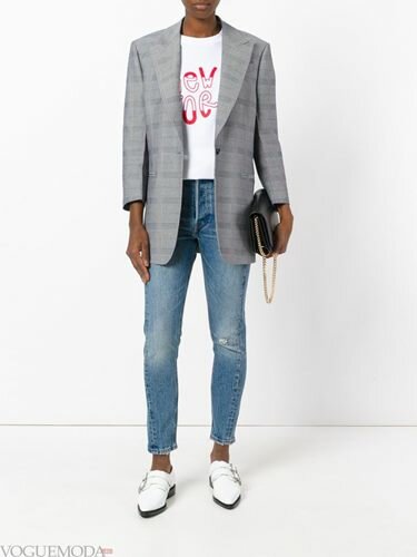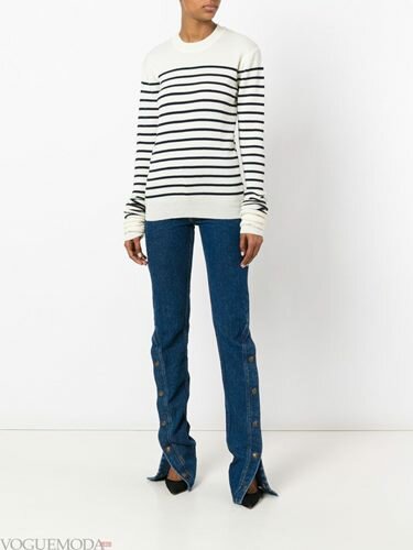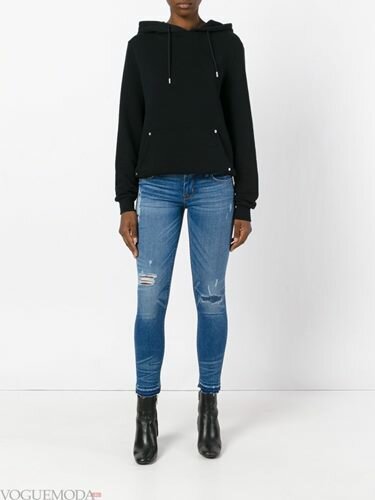 Крім “вільних» моделей, дизайнери запропонували і класичні варіанти з високою посадкою, з вилогами і мотивами під шкіру рептилій. Трендовими квітами стали чорний, рожевий, білий і синій. Світлі джинси відмінно поєднуються з пуховиків або верхнього одягу зі шкіри.