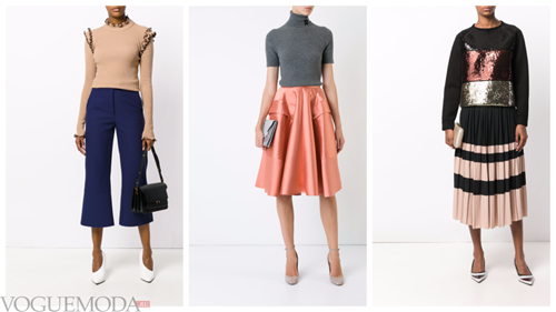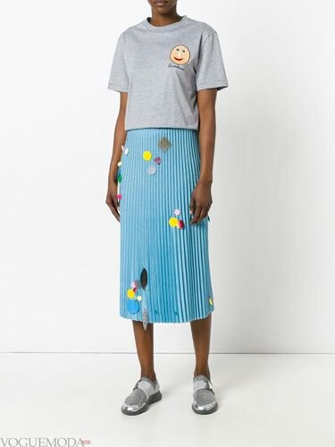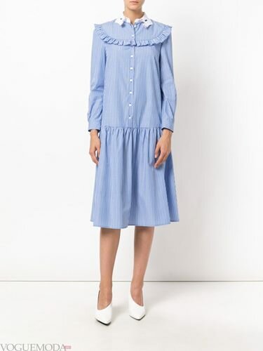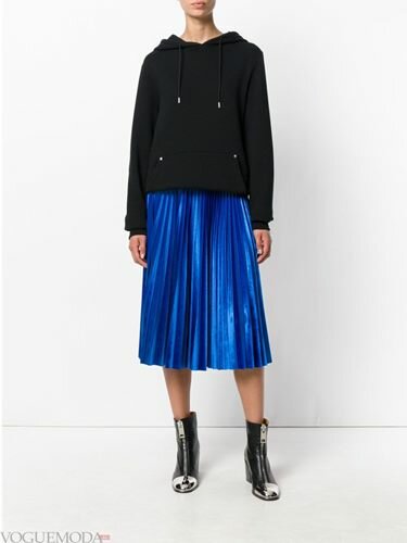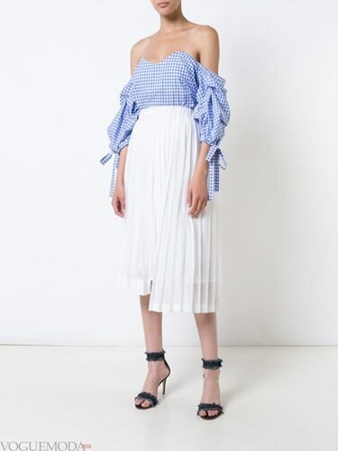 Осінній образ прикрасить яскраво-синій шарфик з білими розводами, а також плісировані спідниці до коліна. З огляду на те, що саме блакитний колір вважається головним атрибутом літа, не варто забувати про романтичних блузах і сорочках.