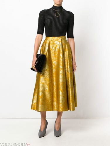 - Пряна гірчиця. Цей колір був визнаний одним з найяскравіших і насичених варіантів 2018 року, який здатний внести пікантні і екзотичні нотки в будь-який наряд. Такий колір відмінно поєднуються з яскравими прикрасами та широкими поясами.