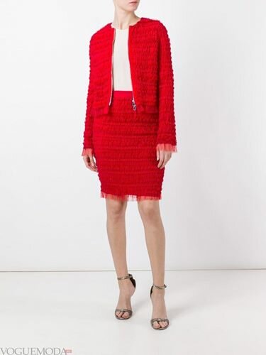 Використовувати червоні відтінки в своєму образі потрібно тільки в легкому варіанті, серед яких сарафани на тонких бретелях з оксамиту, а також шифону сукні А-образного крою. Більш стриманим і цікавим варіантом вважається червоний брючний костюм, а також спідниця-олівець з щільного трикотажу і шерсті.