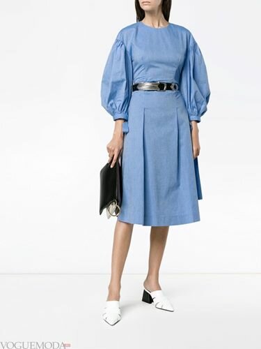 Синій колір вважається базовим атрибутом кожного гардеробу, так як він легко поєднується з іншими відтінками одягу. Крім звичайних джинсових речей, доповніть свій гардероб елегантним сукнею, сарафаном, футболками-оверсайз і струмливими туніками з натуральних і «дихаючих» тканин.