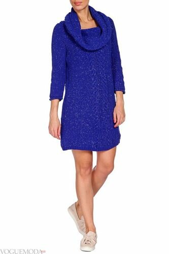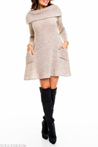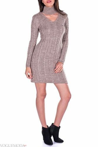 Зараз актуальні моделі нью лук з трикотажу грубої в’язки, з тонким ремінцем на талії, довгими рукавами і закритим декольте.