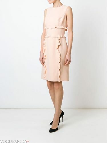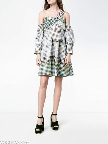 Мода на відкриті плечі нікуди не дінеться, весняно-літні сукні будуть прикрашатися великими воланами по лінії грудей і плечей, відкривати одне плече і підкреслювати руки і ключиці. Наймодніша довжина – міді, колір – жовтий.