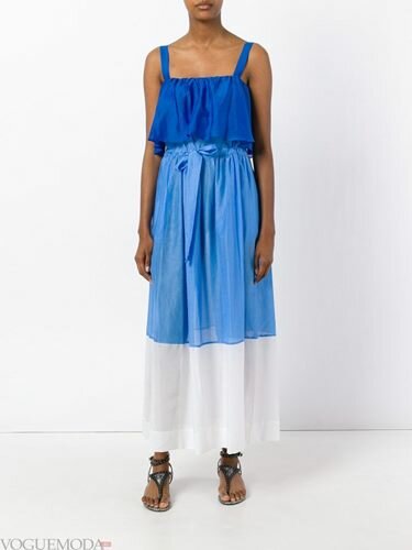 У моді сарафани з оборками та воланами, під які потрібно надягати білі футболки або однотонні футболки-поло.