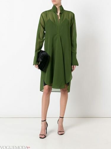 Також слід звернути увагу на А-силует і плаття сорочку. Такі моделі відмінно поєднуються з щільними колготами, ботильйони, жакетами і кардіганами.